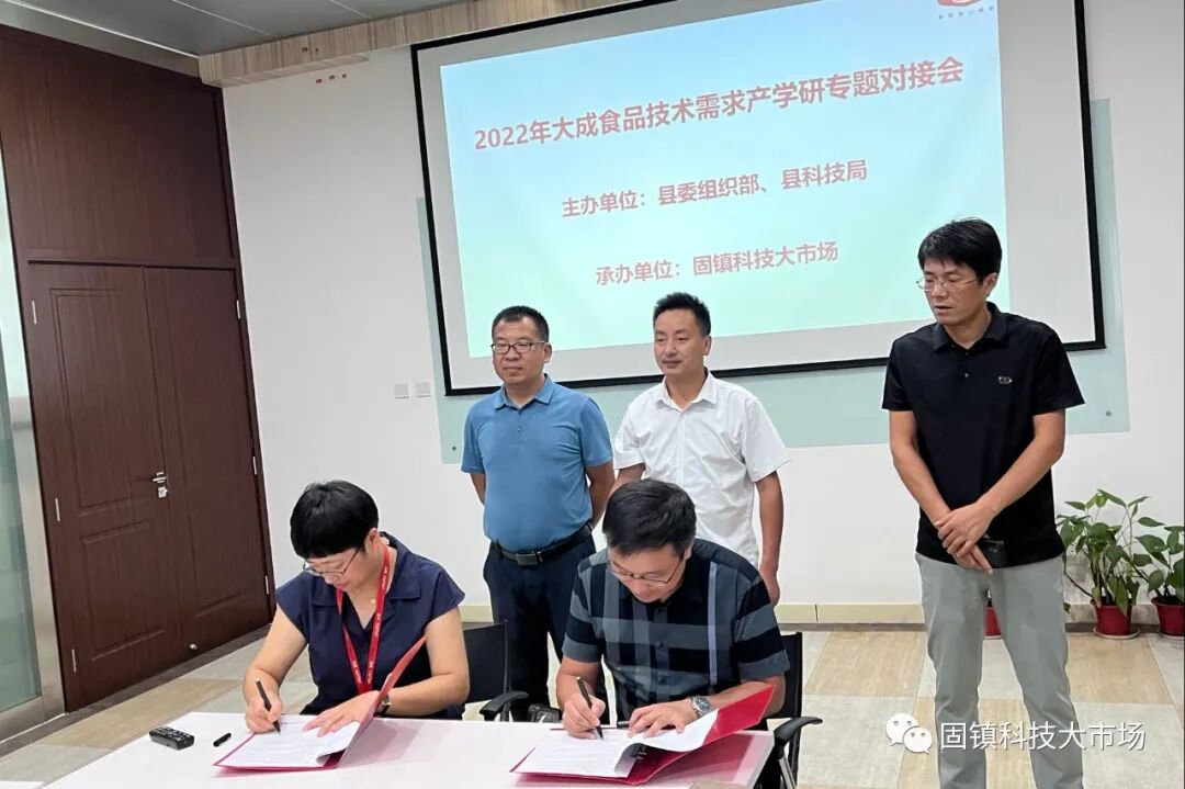 在长时间的深入交流过后,蚌埠大成食品有限公司与安徽农业大学、蚌埠科技学院、蚌埠学院在县委组织部、县科技局、固镇科技大市场相关负责同志的共同见证下分别签署了意向合作协议。