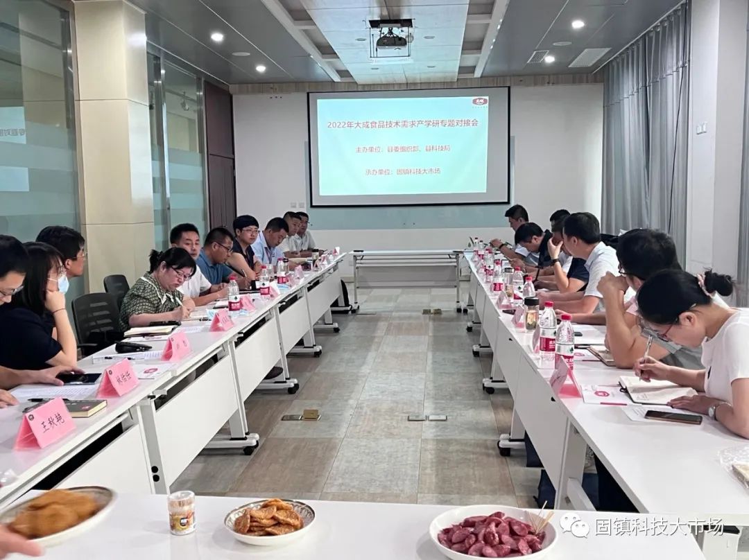 2022年8月25日下午,由固镇县县委组织部、县科技局主办,固镇科技大市场承办的“2022年大成食品技术需求产学研专题对接会”在蚌埠大成食品有限公司成功举办。县委组织部、县科技局、固镇科技大市场相关负责同志,安徽农业大学食品学院、安徽科技学院、蚌埠学院食品专家组一行,蚌埠大成食品有限公司相关负责人参加了本次产学研专题对接会议。
